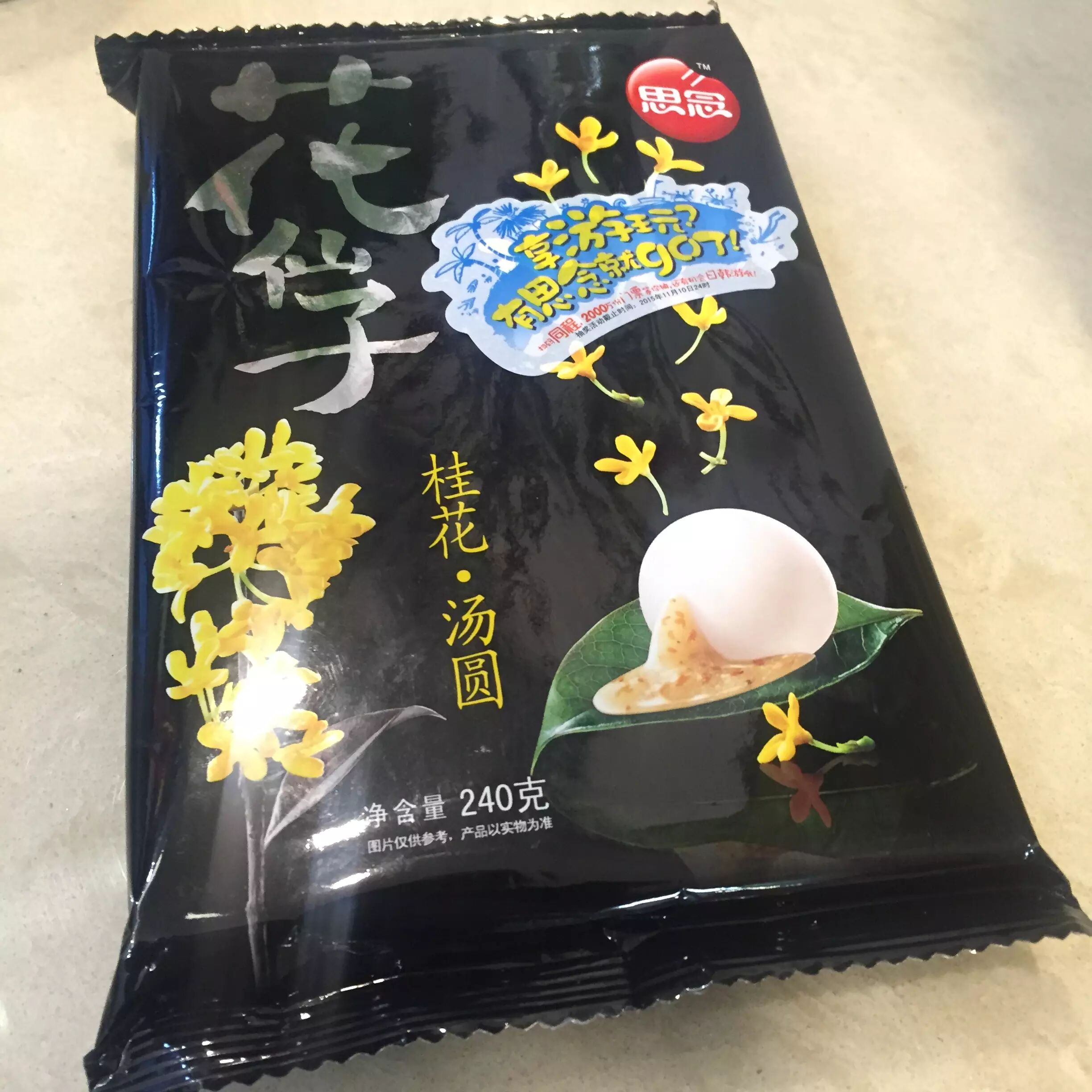 这款真花汤圆包装倒是高大上的雅黑,拆开包装看上去就是普通的小汤圆。因为采用的馅料是广西金桂、山药、奶粉这样类似甜点的馅料,稍微煮个两分钟就可以出锅开吃了。咬开面皮,流出的晶莹馅料立刻花香四溢开来,而且真的可以看到金黄的桂花,桂花香中带着一丝甜意,沁人心脾,每一口都好像自然芳香绽放在唇齿之间。![]()