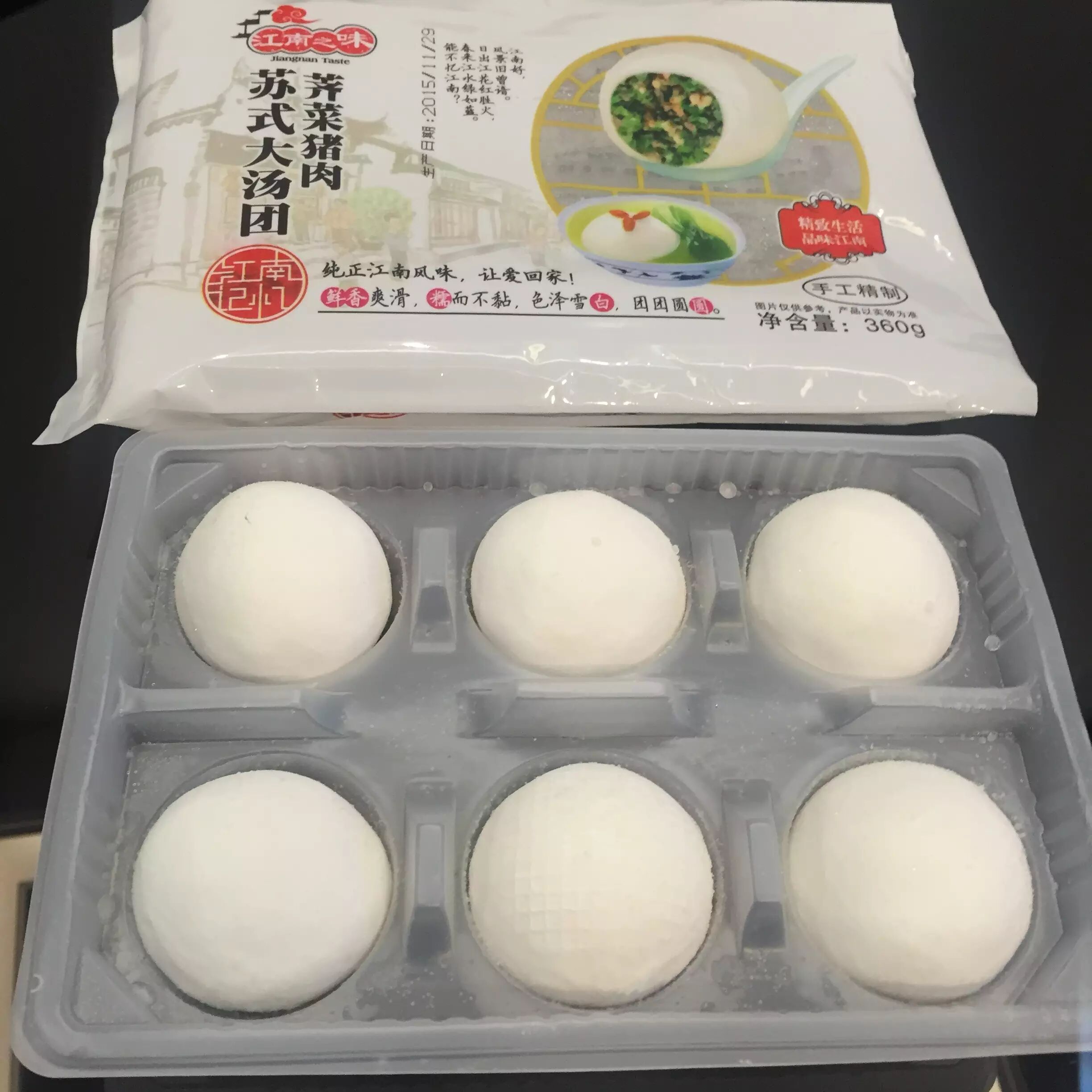 一包六只装的大汤团,正好适合一家人一顿的分量。虽然还是普普通通的包装和外表,吃上去很是惊艳。猪肉的含量特别多,所以馅料很紧实,一点都不松散。加上荠菜的清香,吃几个都不会腻,柔软的糯米包着咸鲜的馅儿,咬一小口,吹一下,透透气,然后再啊呜啊呜消灭掉!
