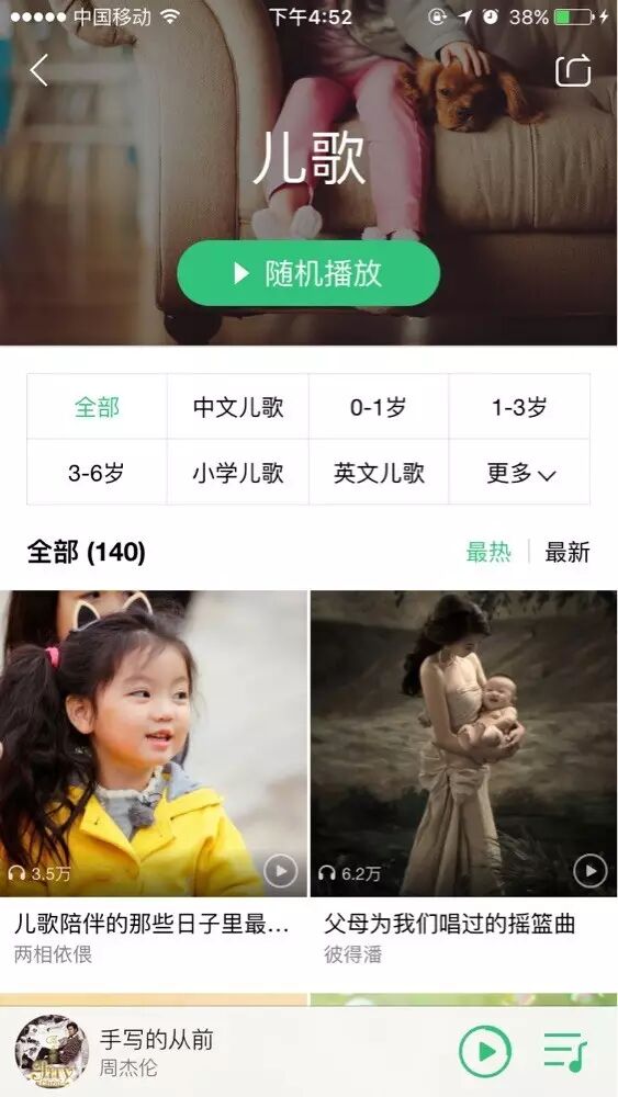 2016相信不少80后都为人夫人母了,以前用音乐APP都是听自己喜欢的歌,循环播放的可能是杰伦、Bigbang、Adele等等,但小孩出现后需求也许发生了变化,搜索最多的可能是早教音乐、适合宝宝听的歌,细心的我们当然不会忽视这一需求,特地搜集整理适合不同系列儿童音乐,使不同年龄的孩子们都能在音乐的陪伴中快乐成长。