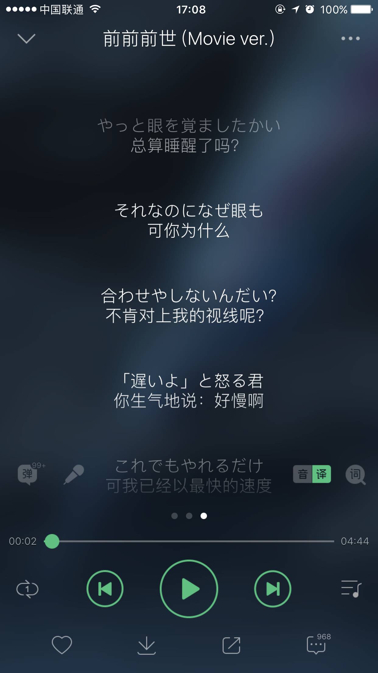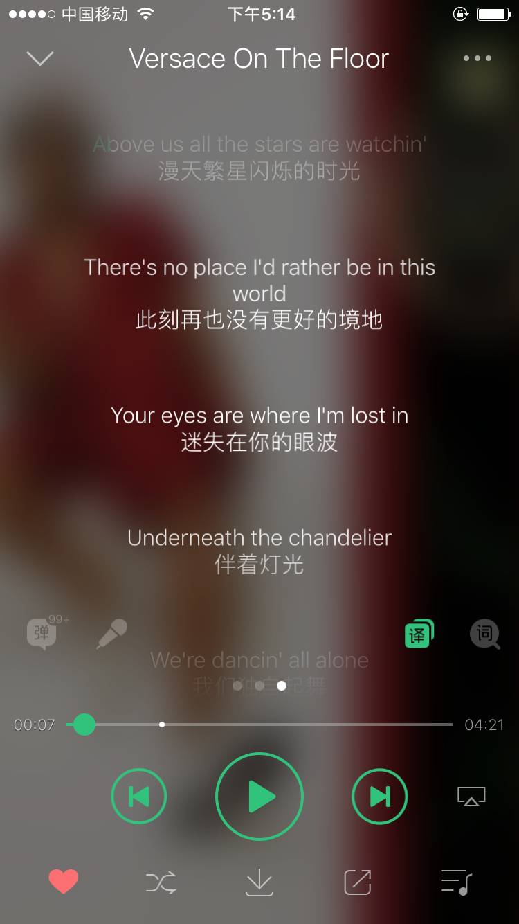 (翻译歌词位置:打开QQ音乐播放歌曲界面->向左滑动->点击“译”)