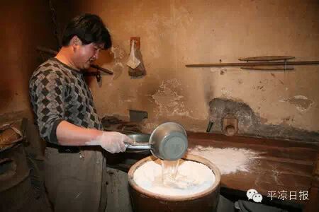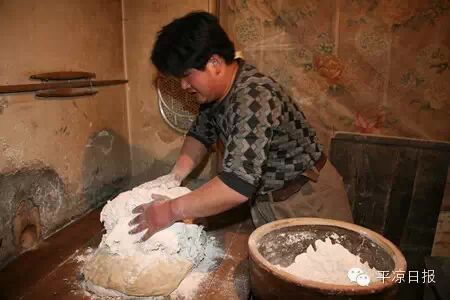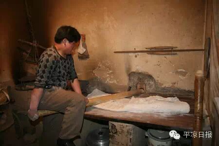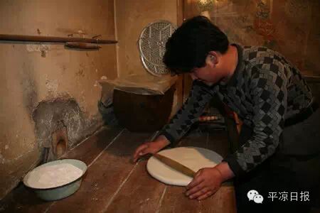 2007年7月的一天,时隔几十年后的我又一次站在了买锅盔的地方,不同的是,这次我没有咽口水,而是来到了制作锅盔的地方——东台小区。今年27岁的杨小平是这家锅盔的制作者,烙锅盔这门手艺是杨小平跟他父亲杨金林学的。老杨今年63岁,祖上传下的这门手艺使他在第一届“崆峒旅游节”上取得了地方小吃比赛二等奖的好成绩。