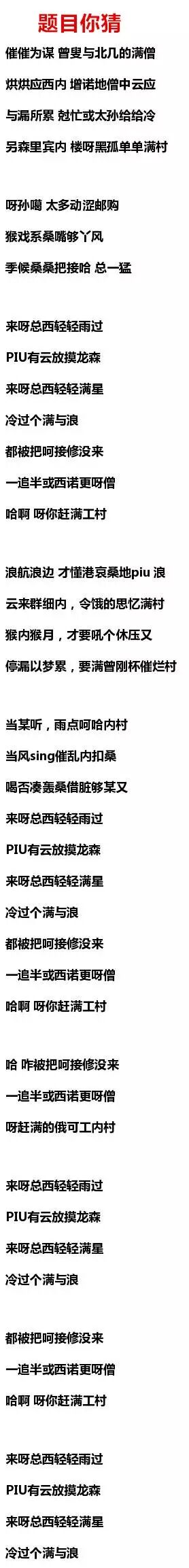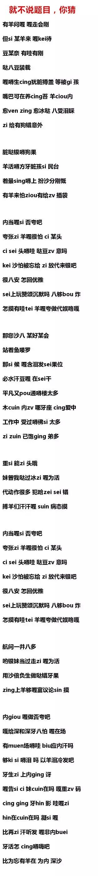 我们广东人唱粤语歌没什么难度,但是外省人就不同啦,猜也猜不到,他们为了唱好这些歌,都出了套炉火炖青的秘诀啦,下面几首歌词,你猜中了哪几首![[笑cry]]()