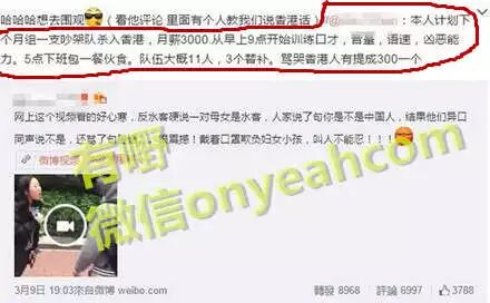 有些大陆既朋友就不爽啦,于是,说要组织一个“吵架队”:月薪3000从早上9点开始训练口才、音量、语速、凶恶能力。5点下班包一餐伙食。队伍大概11人,3个替补。骂哭香港人有提成300一个。