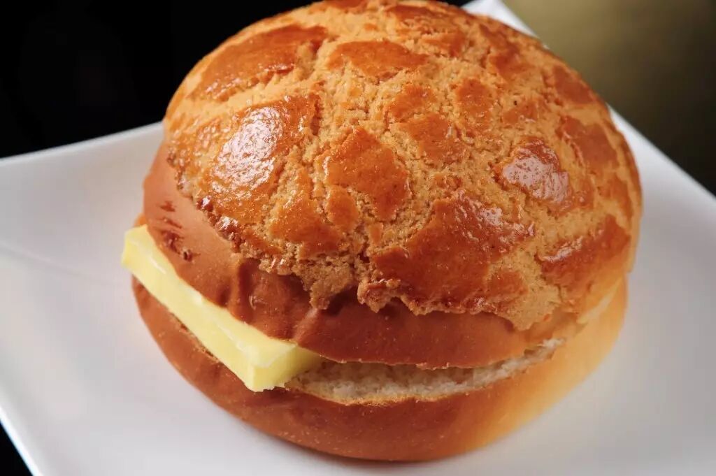 新鲜热辣的菠萝包本身已经很诱人了,再夹进去一块5毫米厚的冰冻鲜牛油,一热一冷一甜一咸一酥一滑,口感复杂细腻,是港式茶餐厅的经典菜品。