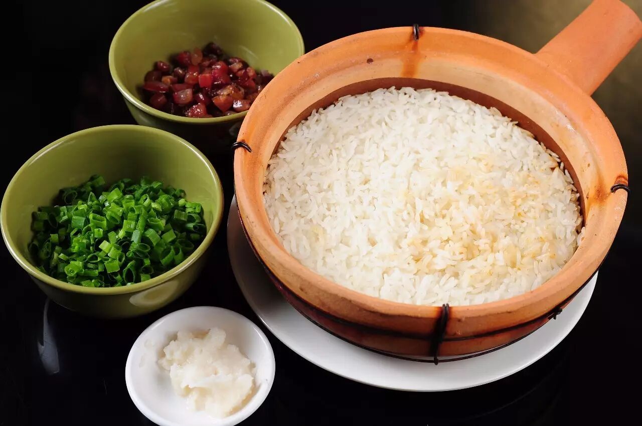 腊味煲仔饭,选用上等泰国香米,以传统明火烹制二十分钟后上桌,配以广式腊肠腊肉、葱花、猪油。都说煲仔饭要好味,有一样东西必不可少,那便是酱油。香港传奇的酱油是厨师特别调制过的,最后淋在饭上,渗透下去,足以带动一煲鲜味。