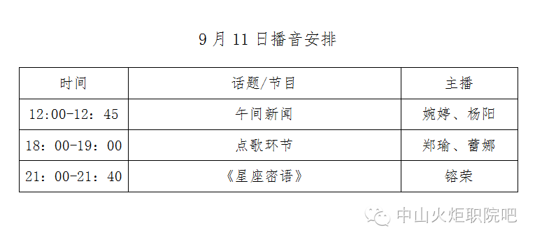 2016年9月11日12:00-12:45 18:00-19:00 21:00-21:40