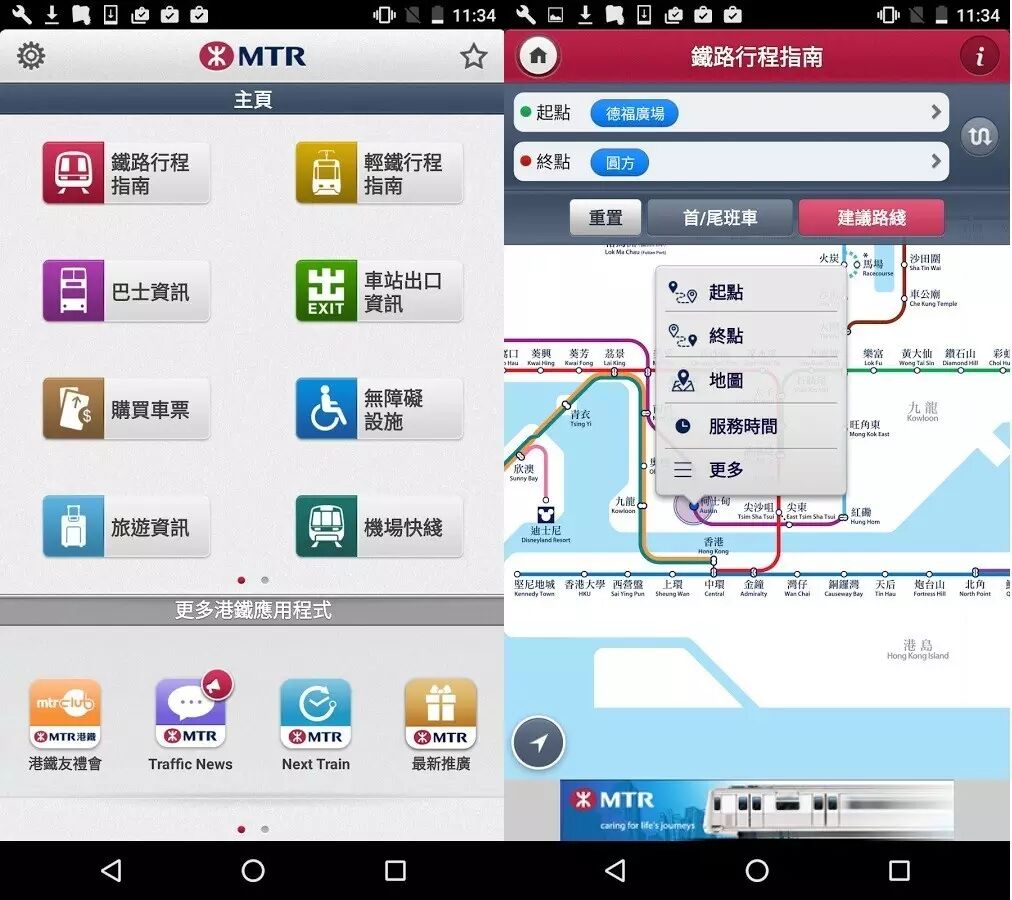 港铁还推出了一系列单个查询功能的app