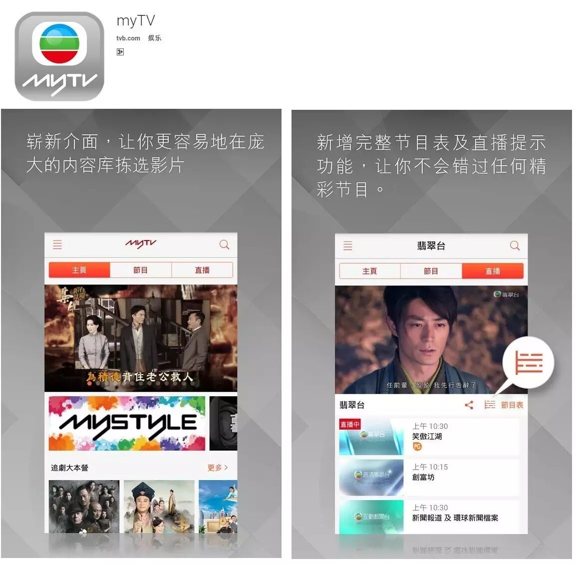 这款app是能够随时随地欣赏TVB的丰富节目!