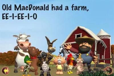 农民老麦当劳有一个农场,那里有好多不同的动物,它们都有各自独特的叫声。