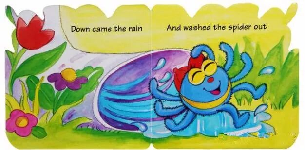 小蜘蛛爬上了排水口,下起了雨,把蜘蛛冲走了,太阳出来了,雨水干了,小蜘蛛又爬上了排水口。