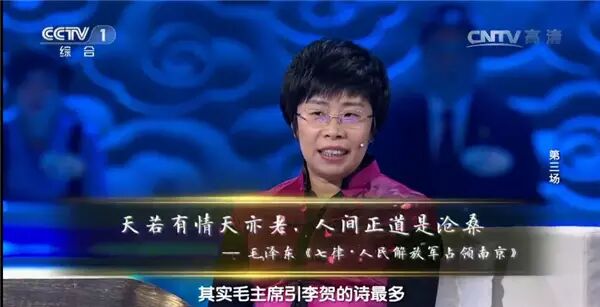 中央民族大学的副教授蒙曼,学识渊博,中华上下五千年的诗词歌赋,她信手拈来。在讲解的“天若有情天亦老,人间正道是沧桑”时,蒙曼说,这是引用了李贺的诗。十分欣赏李贺的诗,李贺英年早逝,只有240多首诗流传下来,其中被点评过的,就有80首。