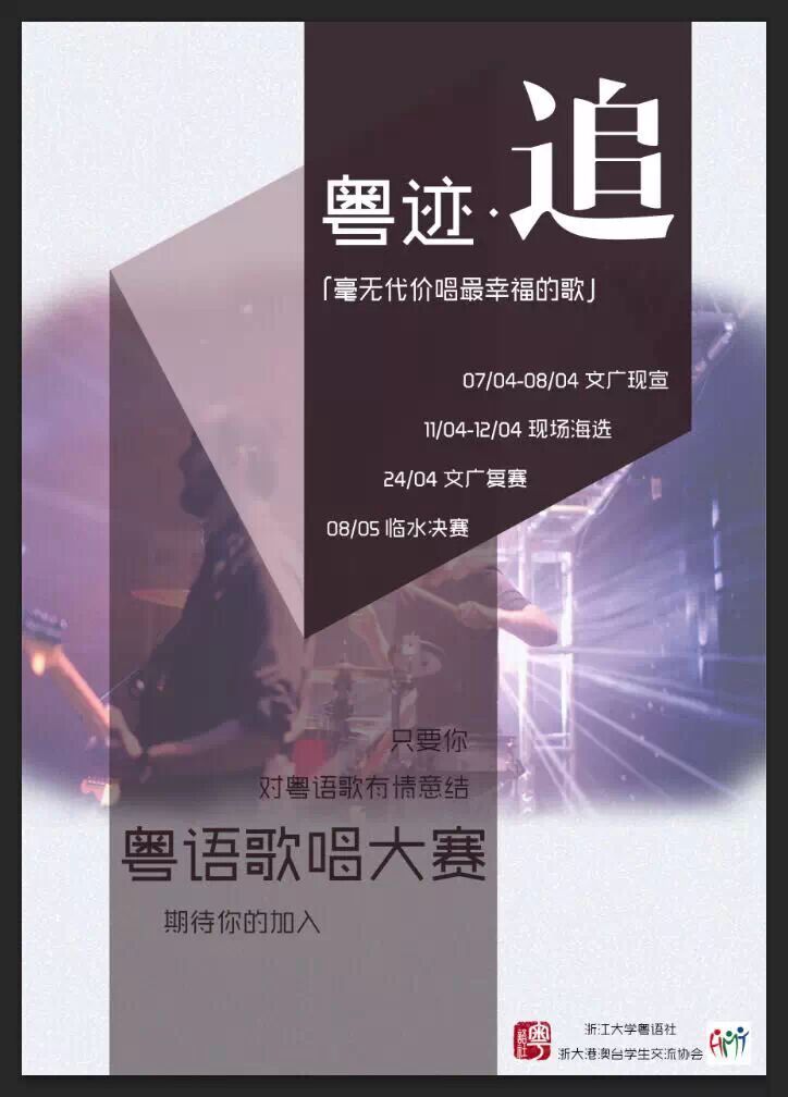 2、在线报名:参赛个人或组合下载电子版报名表,填写完整后发送至zjucantonese@163.com。报名表请以《【姓名】第三届粤语歌唱大赛报名表》命名。报名表链接:http://pan.baidu.com/s/1i39Z5Jn