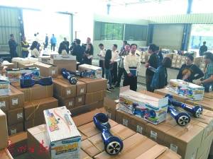 4)今天是“世界知识产权日”,深圳海关昨日举行新闻发布会,通报了对出口电动平衡车知识产权保护专项行动成果:2016年11月15日至12月31日,该关连续查获涉案电动平衡车11710台。