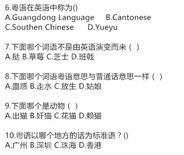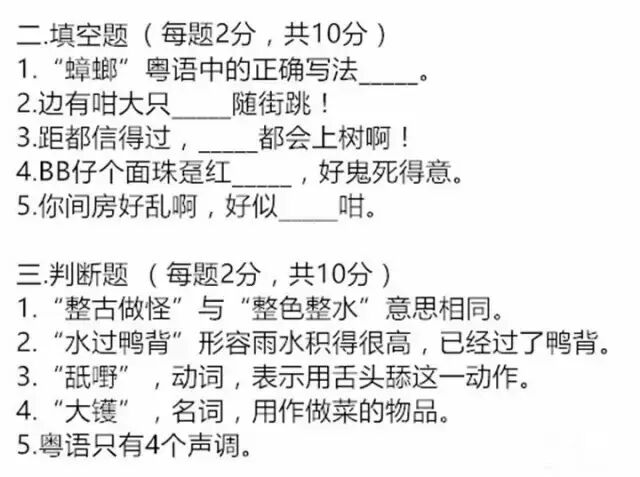 如果说“粤语四级”,考的是粤语常语。“粤语六级”,考的是粤语特有词语的了解。那粤语八级考的就是粤语的写法,即使是老广,会读会用也不一定会写呢!不如你也来来做做这份“粤语八级”试题,感受一下超够味的粤语吧!