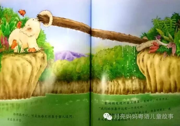 邦邦开心极了,于是它每天都用长鼻子帮人过河。后来,象妈妈与邦邦一起把树干卷起来,架到河岸上,这样,大家都可以顺利过河了。