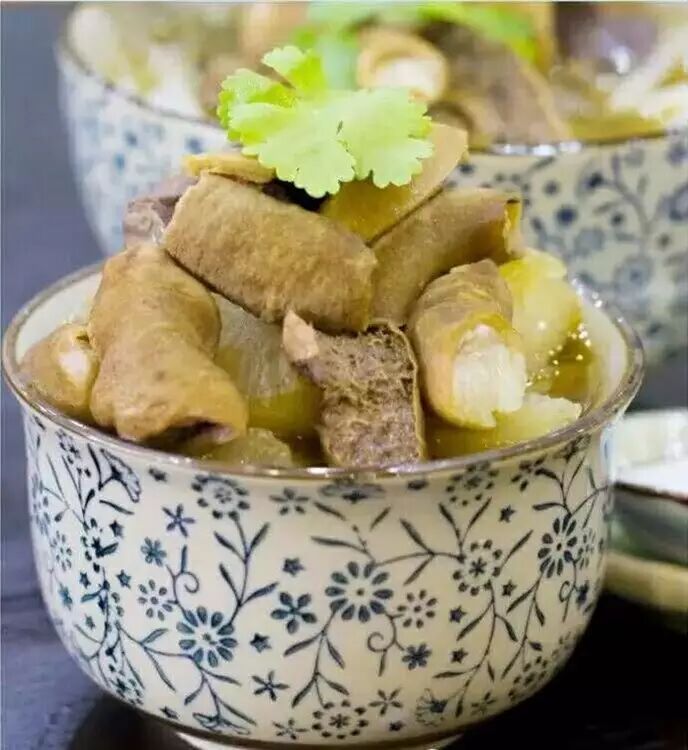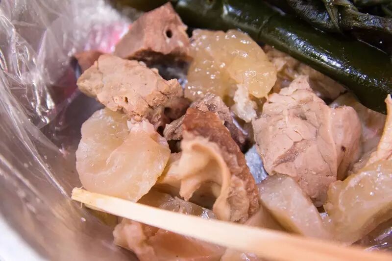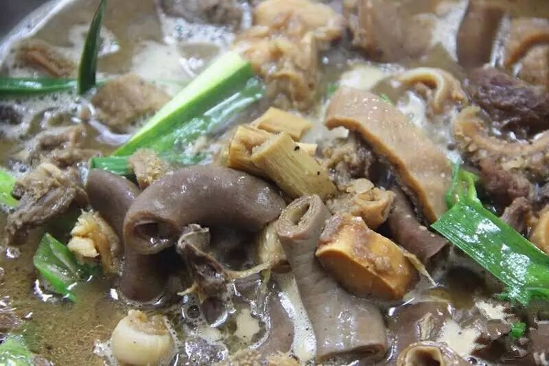 住在麦围大街附近的朋友一定知道明记牛杂,这间传统的牛杂老店,连餐具也相当有古韵,例如这个茶煲就是两条竹藤作耳,壶身绣上简单鸡公图案,相当古色古香。小编还在高中时,就经常伙同几个好友一起偷走出校,在课后偷运几串牛杂加菜或者宵夜。明记牛杂的牛杂煲是用砂锅熬制,温火慢滚的砂锅不怕沾底,汤汁也不会太快散失和过咸。每天早上都可以看到老板娘在店门前准备新鲜材料,一桶秘制汤汁从厨房抬出,是什么原料熬成的呢?你试试问老板娘,看她会不会告诉你?哈哈!