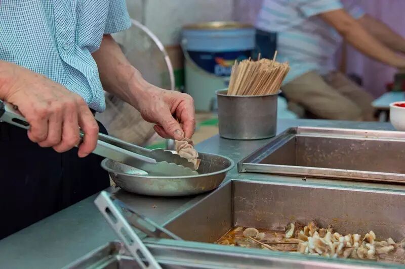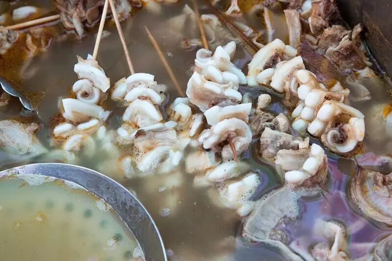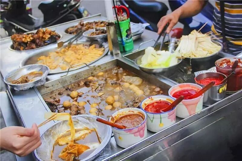 对于吃货来说,觅食不需要空调,甚至不需要店面,好吃才是王道。学宫街麦当劳对面的小巷里有一档夫妻牛杂档和阿婆糖水,每天下午都早早就有人等待着夫妻牛杂车的到来,这条狭窄小巷被围得像“事故现场”。“老板,一份牛肺~!”这里的牛杂不像其他档是先串好一串串,很多都是一整个牛器官放下浓汤炖煮,接到客人下单后再拿起手中的筷子开剪,熟练的剪开,分小块,串竹签,翻浸一下汤汁,交到客人碟子当中,任其调味。吃到嘴里的第一口就笑了,牛杂必须认准这个味!老板可能有独特的挑材料技巧,因而牛下水的每个部位都很有筋道,细细嚼咬便可吃出牛的香气,酱汁的香浓又不至于掩盖牛杂本应有的而味道,每天都有络绎不绝的人慕名而来也是有原因的!