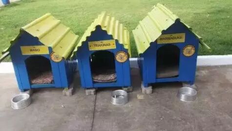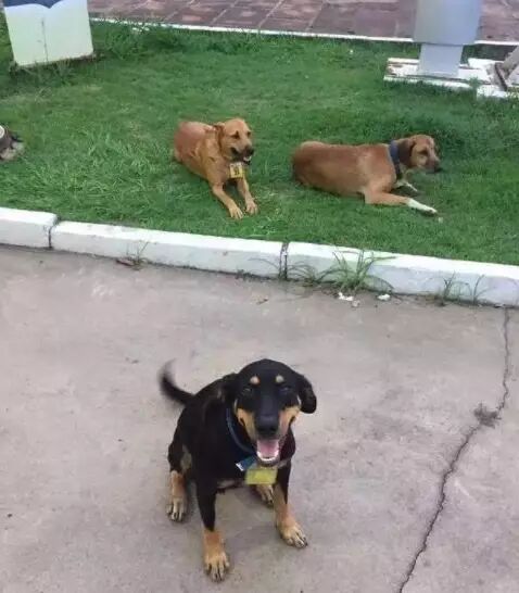 来特地看“狗员工”的人也越来越多,甚至连周围的居民对它们三的态度也变了不少,经常会带好吃的来看它们