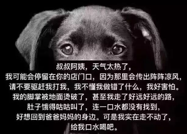 现在,天也越来越热,街上流浪狗的处境更是艰难。它们也许会跑到你店门口、屋前小憩一会,因为从屋里传来的一点点凉风,会让它好过一点