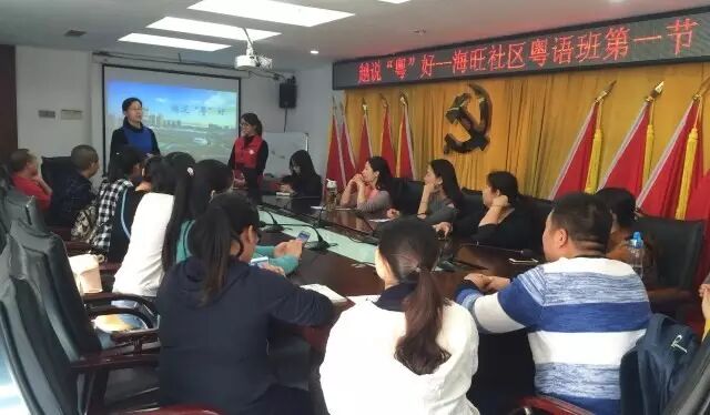 昨天下午,海旺社区党群服务中心社工在社区工作站三楼会议室开展了“越说粤好” 第一期粤语学习小组课程,17名居民参加了学习。此次粤语学习活动,是应居民需求反馈举办的,授课老师共有四名,均是社区的热心义工。
