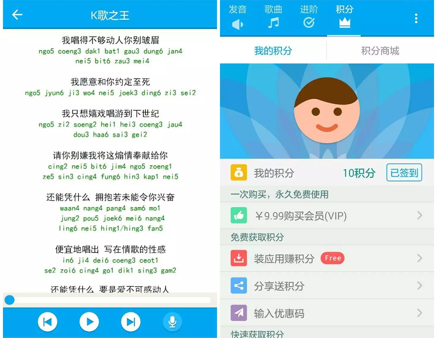 目前正版的粤语流利说需要积分或者付费才能开启进阶模块的全部功能,小编建议如果真心想学粤语,不妨花10块钱支持一下正版!