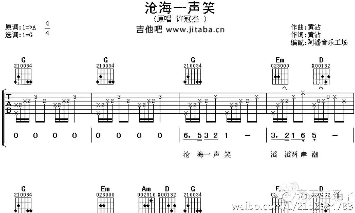 (《沧海一声笑》的吉他谱,其实他用琴箫合奏最有东方韵味。)