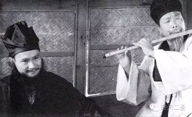 (午马扮演的顺风堂堂主刘正风和林正英扮演的魔教长老曲洋,在合奏《笑傲江湖》,也就是这首《沧海一声笑》,笛子换成箫就更好了。)
