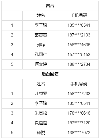 中奖名单