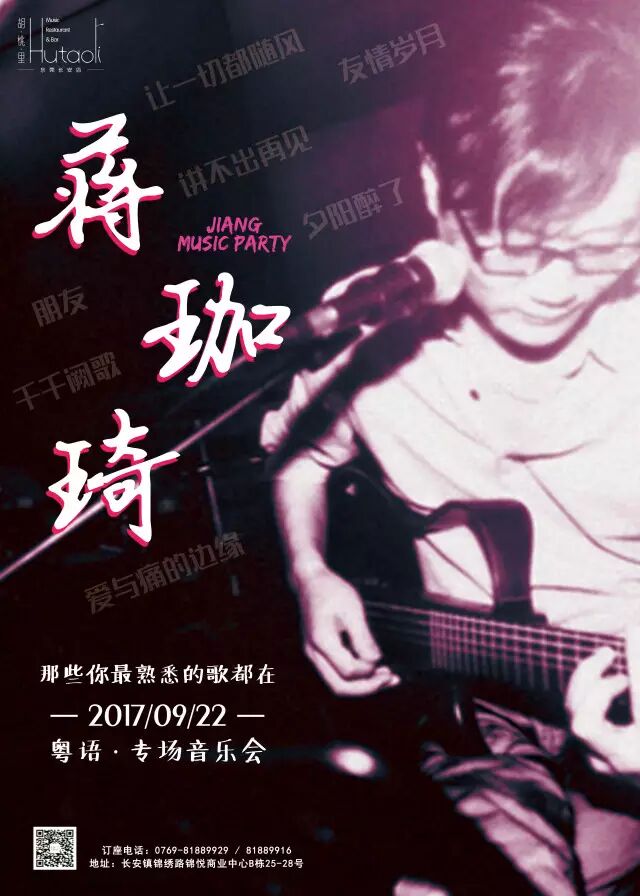 98 年开始学吉他,从事乐队吉他手、和声等工作;曾和苏永康,黑龙等众明星同台哦~