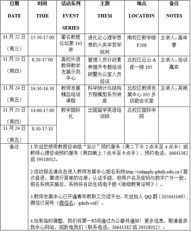 时间:2017年11月19、21、23、26日16:00或17:15开始