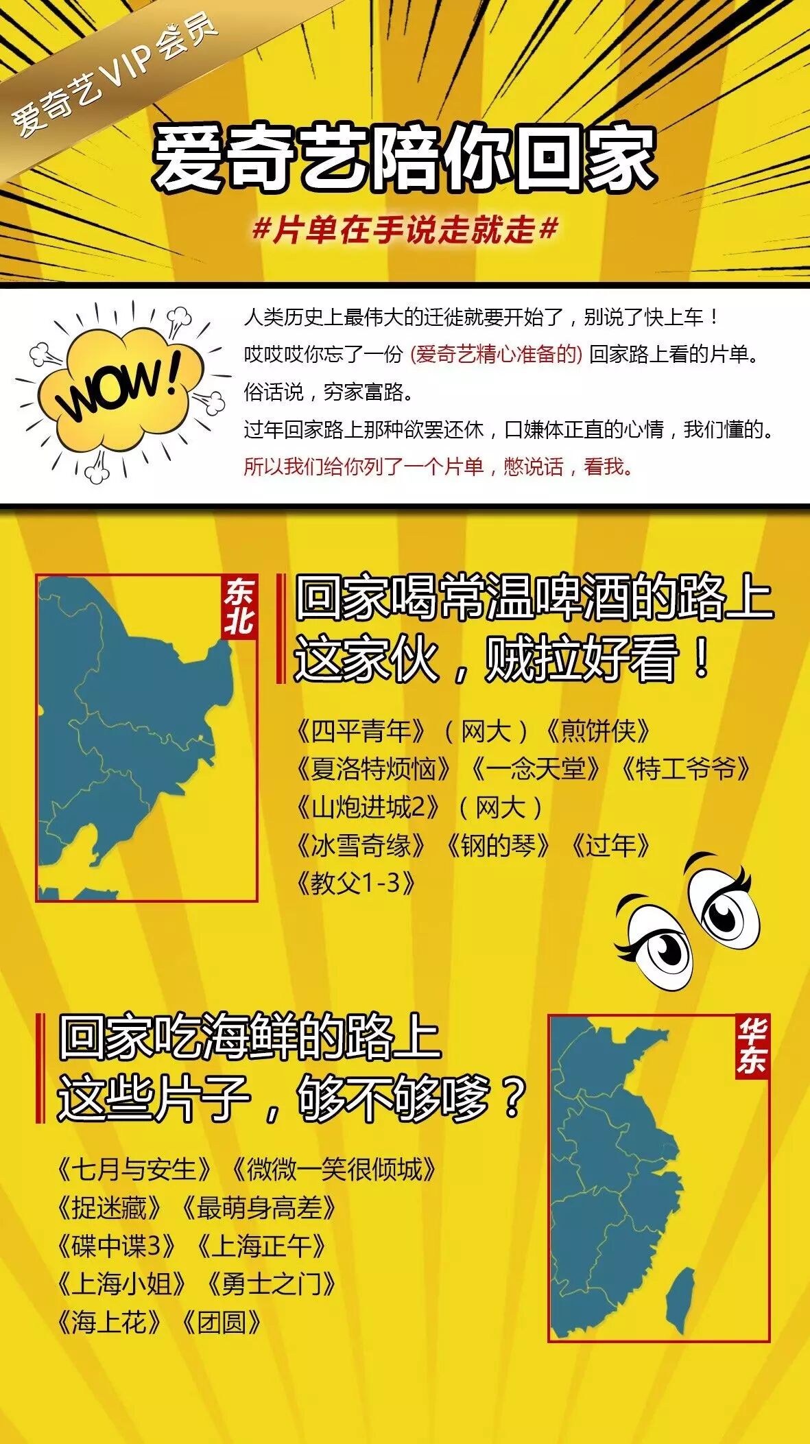 如何打发春运旅途无聊时光?撩小姐姐?你得有这本事!和邻座侃大山?警惕江湖骗子!最安全淡定的办法——提前下载电影到ipad和手机,你的春运才不是《人在囧途》!扫一眼爱奇艺发布的“路途片单”,不同地域风格,不同路程耗时,精心推荐电影,也算寒冬里的小确幸。