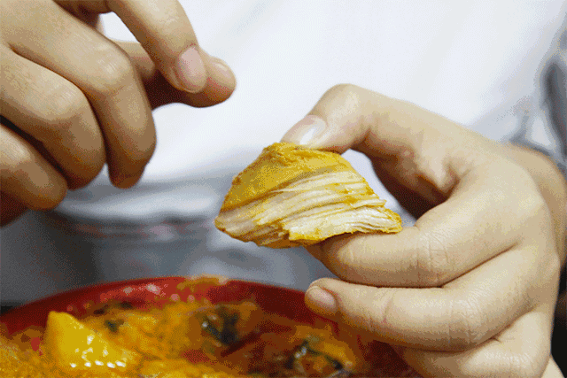 香脆可口的咖喱角,蘸着番茄酱吃,酸甜解腻,这时候再来杯拉茶,能把人美的找不到北。