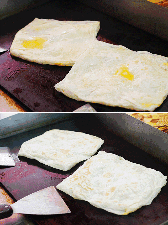 每份芝士鸡蛋薄饼都放了超足料的牛油和芝士,饼皮嘭起来的时候AFA的心也跟着砰砰跳。
