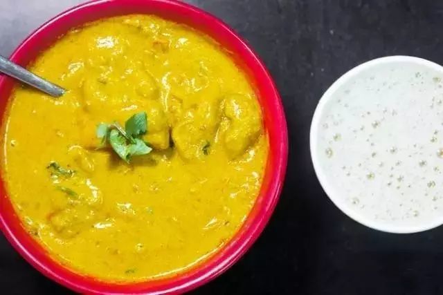 鸡肉没有骨头,实实在在的全是肉,被香辣的咖喱汁包裹住,只是一眼就加速了唾液的流动速度!