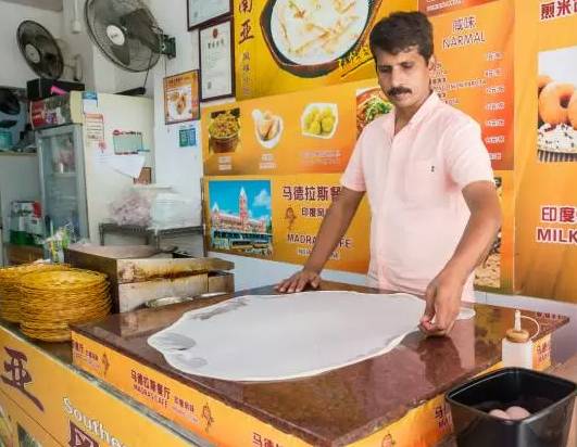 印度老板每天就在这个小小的工作台上,变着戏法似的甩飞饼给大家吃!