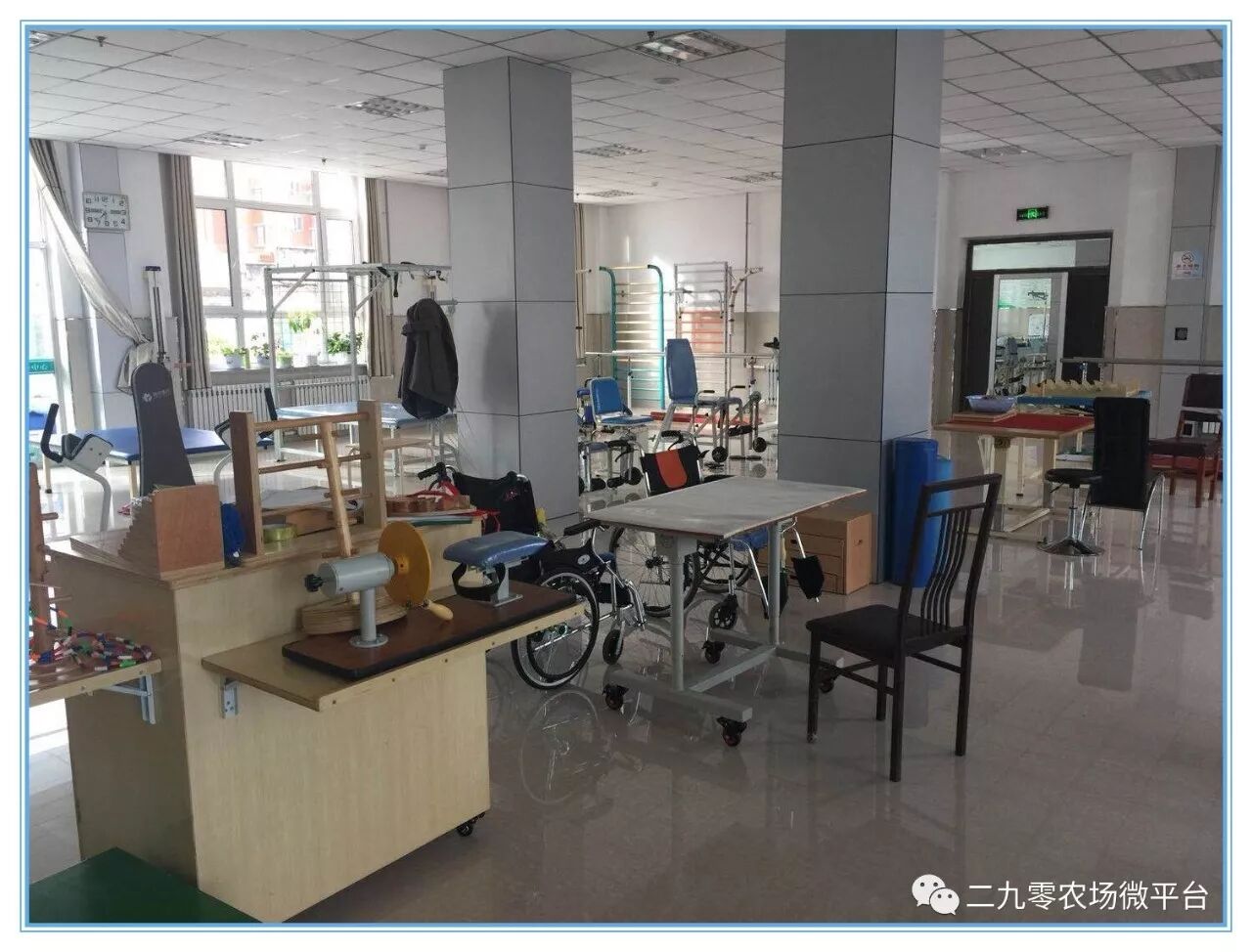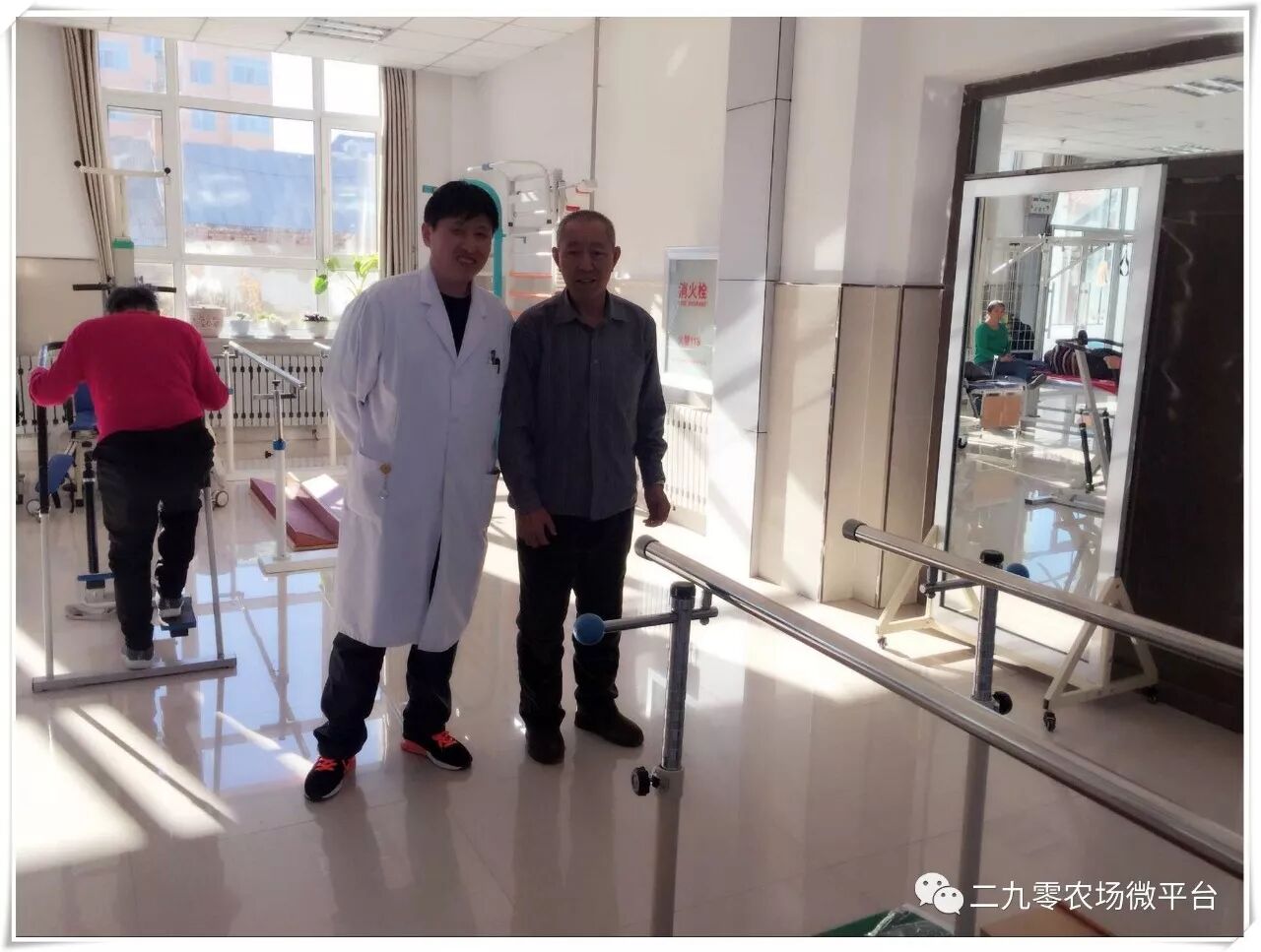 2015年10月,二九〇农场医院投入90余万元成立了中医康复大厅,是集中传统特色康复与现代康复理论及治疗方法为诊疗特色的专科。设有中医治疗室、理疗室、运动治疗室,配备有空气波压力循环治疗仪、低频治疗仪、中频治疗仪、言语吞咽治疗仪等先进康复设备,现有经验丰富的康复治疗师3人,中医医师1人。