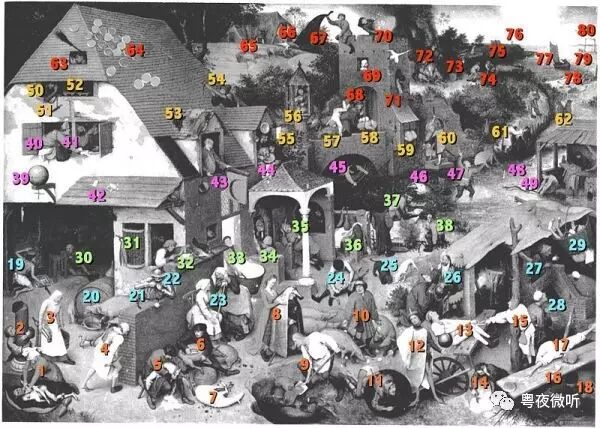 一五五九年,荷兰画家Pieter Bruegel创作咗一幅经典油画《尼德兰谚语》,以一图描绘大量荷兰俗语去歌颂荷兰文化。