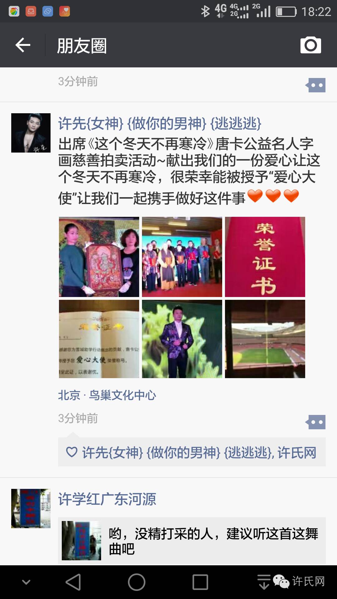 许家大明星许先微信朋友圈晒照片爆料:出席《这个冬天不再寒冷》唐卡公益名人字画慈善拍卖活动~献出我们的一份爱心让这个冬天不再寒冷,很荣幸能被授予“爱心大使”让我们一起携手做好这件事[爱心][爱心][爱心]