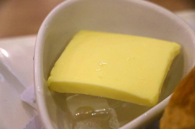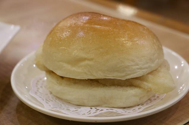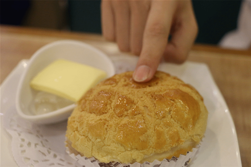 刚上的菠萝油温热酥脆,一口咬下去,冰镇的厚切牛油和外层形成冰火两重的至尊感受,其实最爽的是第二口,牛油开始在菠萝包中融化,滲透進面包中,更加入味,搭配冻奶茶更是首选标配。