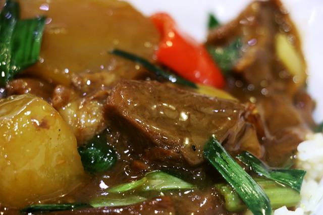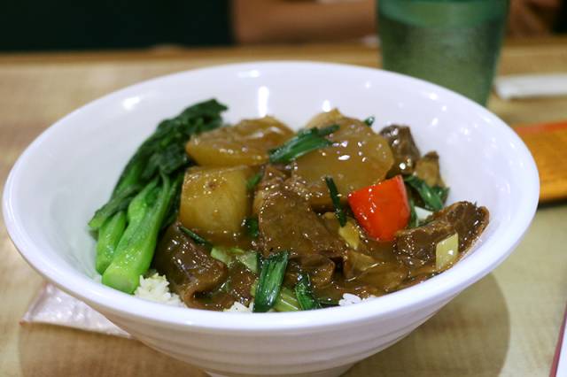 牛腩足料大块,大份的牛腩加上鲜甜的柱侯炖煮入味,不管是重口味还是小清新,这样都是最好的搭配了。配上软糯香米饭,一口就能叹世界啦。