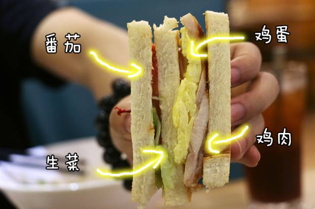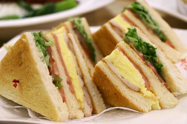 三文治也可以说是茶餐厅里热门菜品之一,用料十足,就算是午餐点一份三文治也绝对管饱,据服务员姐姐说,附近的上班族和街坊经常在中午的外卖时间段翻它牌,可见其人气之高。