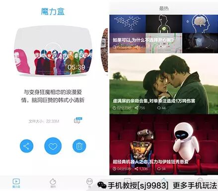 魔力盒是一款在wifi环境下随机自动缓存三部影片的手机娱乐软件,可以帮助用户度过无wifi环境下百无聊赖的时光,比如在地铁上、公交上、或者是比较偏僻信号不好的地方。这款软件最大的特点和优势即不消耗任何移动网络流量;三部短片大小均控制在100MB以内,看后即焚,自动清除缓存,不浪费存储空间。想要打发无聊时间的朋友,或者想要哄哄小孩子,这款软件还是可以帮忙的。