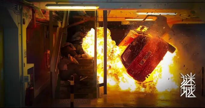 除此之外,《谜城》中激燃的“车战”也大有看头。在林岭东的严苛要求下,撞车和爆破等戏份也突破瓶颈、全面升级。一众豪车在追逐和激战中变废铁,其震撼场面不亚于《极品飞车》。而SUV撞入满载乘客的双层巴士,车子爆破现场腾升而起的蘑菇云火焰也展现了林岭东导演丰富的想象力。