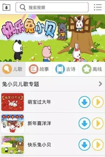 - 儿歌离线下载,把喜欢的儿歌下载到应用里面。随时随地都能观看。