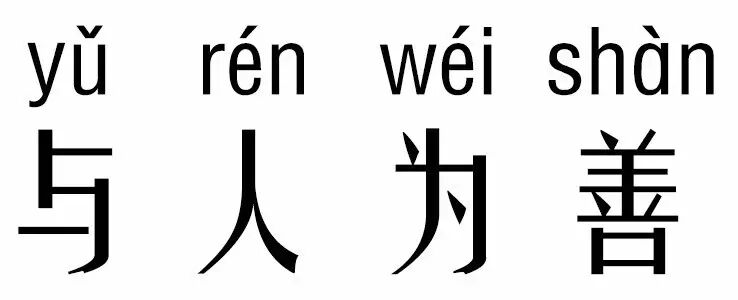 为:做;善:好事。原意指偕同别人一道做好事行善。现指善意帮助人。出自:《孟子·公孙丑上》:“取诸人以为善,是与人为善者也。故君子莫大乎与人为善。”