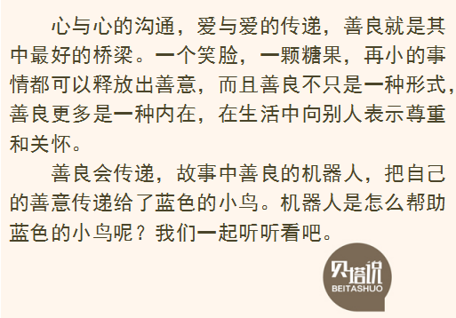 点击下方音频 ▼ ,听听机器人和蓝鸟的故事吧~