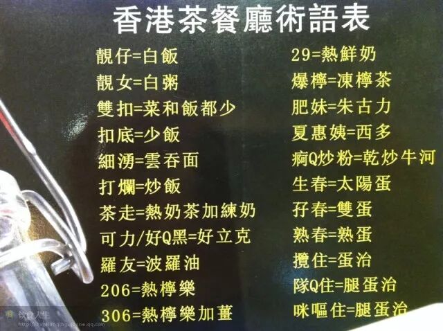 茶餐廳的術語背後大多都有驚天地泣鬼神有趣的典故﹐但隨著西式快餐店的興起﹐這些術語也逐漸失傳。儘管最近打著懷舊風的冰室走進了市場﹐但再多的彷舊瓷磚和從來不開的吊扇都不夠耳朵擱著煙、衣服發黃的伙計的一句「滾水啊借過」來得親切。