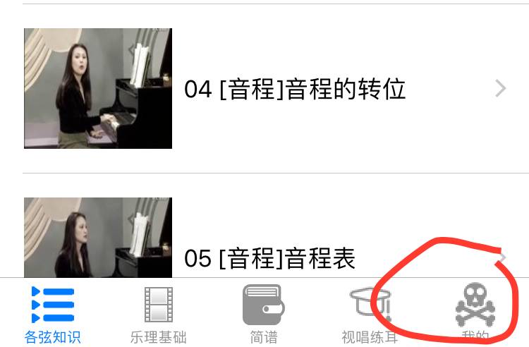 首先是这个叫做“轻松学音乐”的App。里面分为四个板块——和弦知识(不知道为啥错写成了各弦)、乐理基础、简谱和视唱练耳。